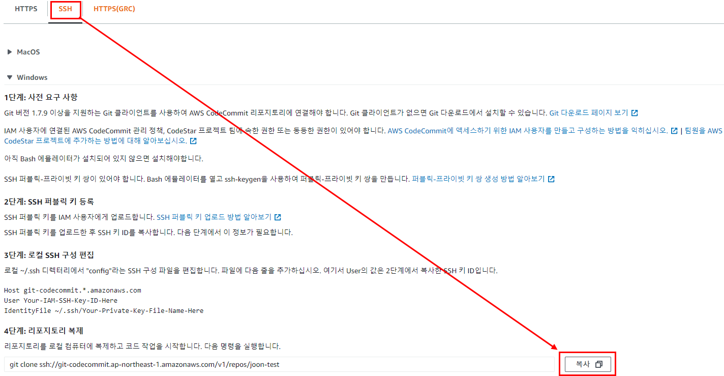 SSH 연결에 대한 설정 단계AWS CodeCommit윈도우의 저장소 - AWS CodeCommit