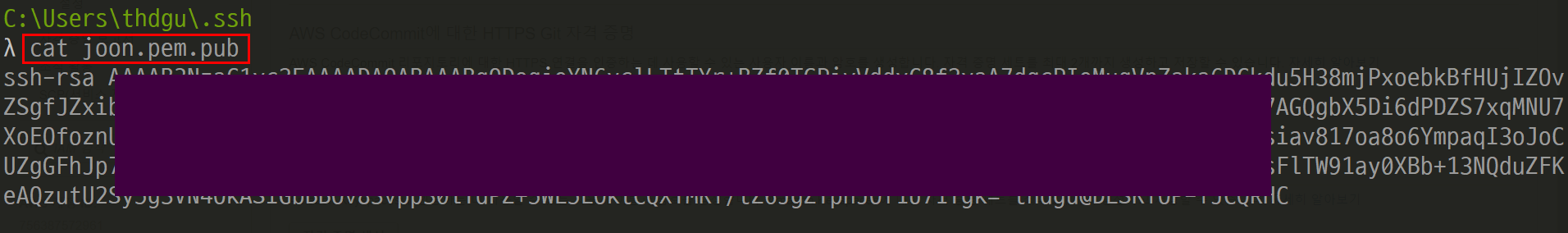 codecommit은 ssh키를 통해 git과 연동되기 때문에 ssh키를 생성해야한다.