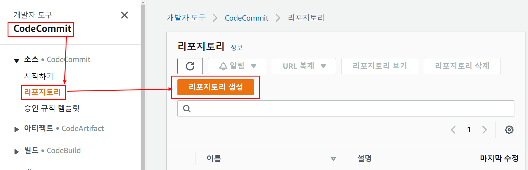 우리가 흔히 사용하는 형상관리 도구인 Git이 있다. Git은 GitHub, GitLab, Atlassian, Bitbucket등을 Repository로 사용하여 소스코드를 관리한다. 이와 동일한 기능을 가진 저장소를 AWS에서 제공하는데 이것이 바로 CodeCommit이다.