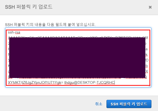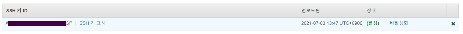 SSH 키 ID를 두 개 이상 업로드한 경우, 키가 업로드 날짜가 아니라 키 ID를 기준으로 영문자순으로 나열됩니다. 올바른 업로드 날짜와 연결된 키 ID를 복사했는지 확인하십시오.