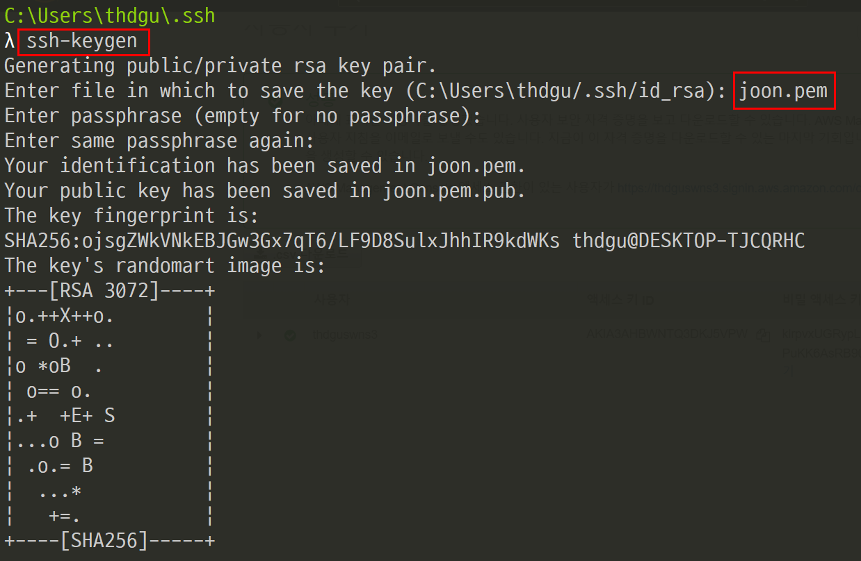 ssh-keygen -t rsa -b 4096 : 키 유형을 rsa로 지정하면서 길이를 4096비트로 지정할 수도 있다.