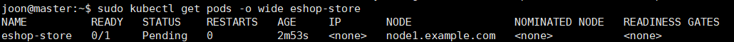 $ sudo kubectl get pods -o wide eshop-store