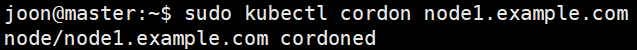 $ sudo kubectl drain node1.example.com --ignore-daemonsets --force