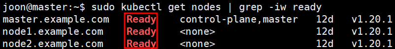 $ sudo kubectl get nodes | grep -iw ready