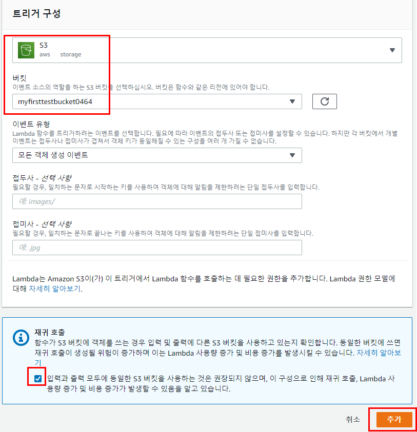 3. S3를 트리거로 추가하여 S3에 업로드한 파일 이름 출력하기