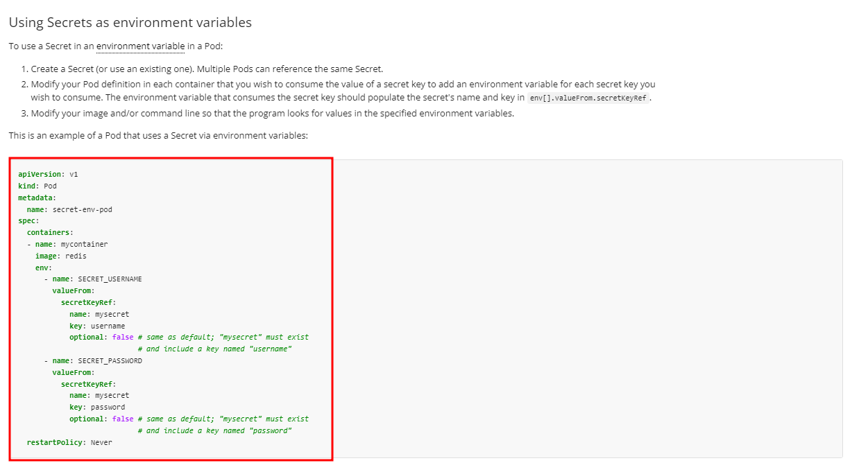 https://kubernetes.io/docs/concepts/configuration/secret/#using-secrets-as-environment-variables 를 참고