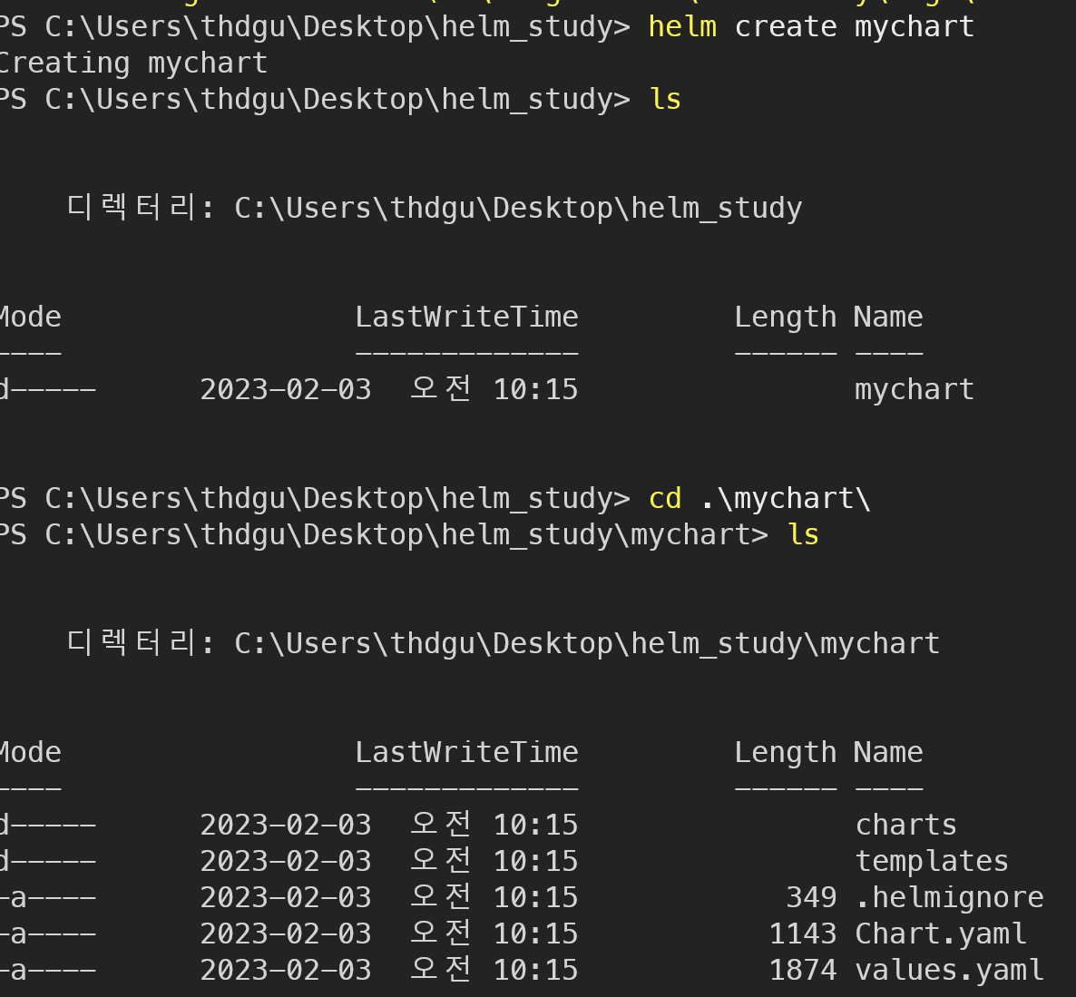가이드를 통해 차트를 직접 만들게 될 것이므로 다음 명령어를 수행한다.