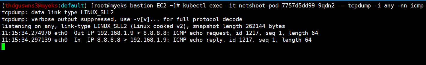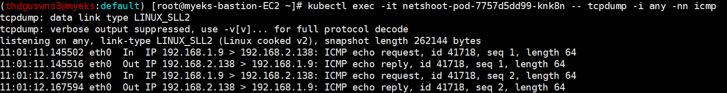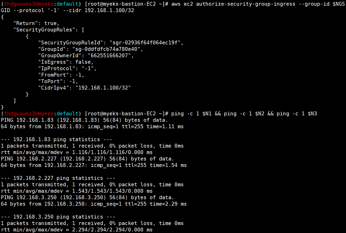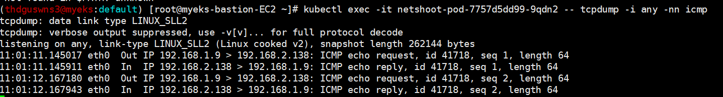 # eksctl-host(Bastion Host) -> 워커노드 Ping Test