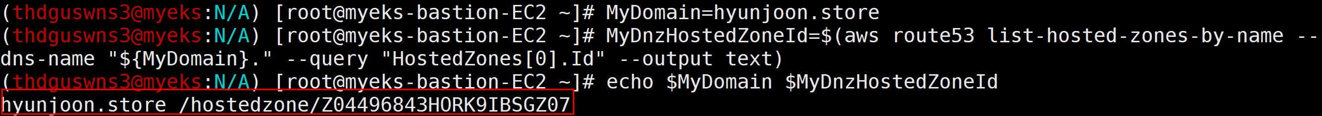 # 자신의 Route 53 도메인 ID 조회 및 변수 지정