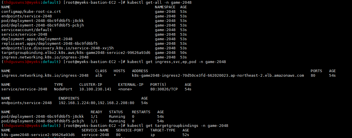 kubectl get targetgroupbindings -n game-2048