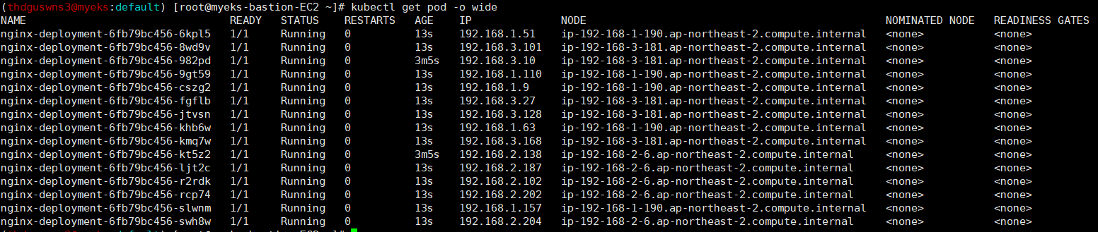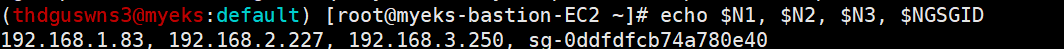 $ N1=$(kubectl get node --label-columns=topology.kubernetes.io/zone --selector=topology.kubernetes.io/zone=ap-northeast-2a -o jsonpath={.items[0].status.addresses[0].address})