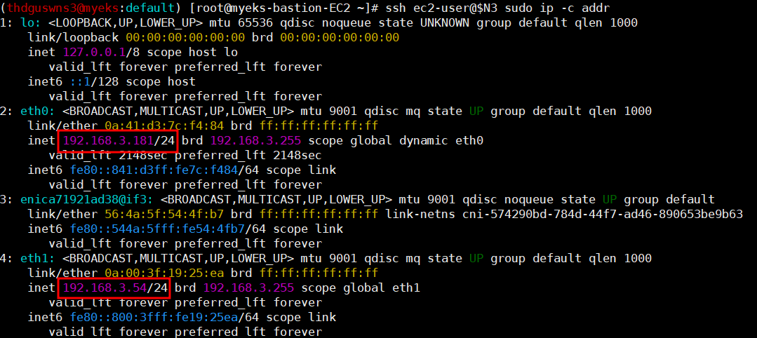 ssh ec2-user@$N1 sudo ip -c addr