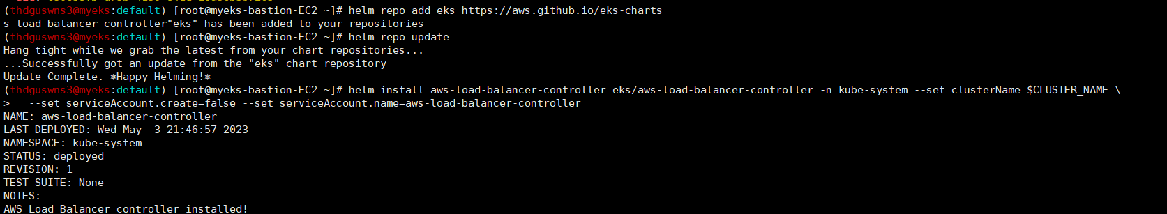 | [AWES] 1주차 - Amzaon EKS 설치 및 기본 사용 (4) | 2023.04.27 |