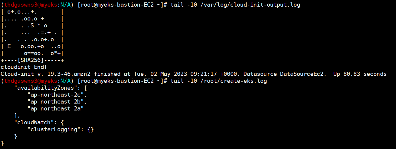 # cloud-init 정상 완료 후 eksctl 실행 과정 로그 확인
