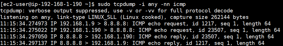 ssh ec2-user@$N1 sudo iptables -t nat -L -n -v