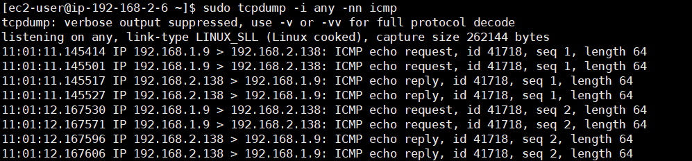 ssh ec2-user@$N2 sudo yum install links tree jq tcpdump -y