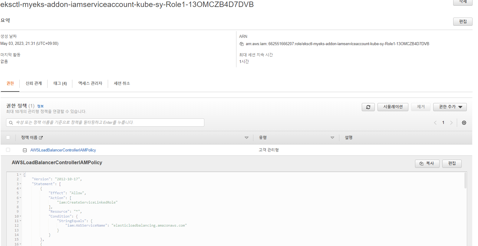 # EKS 배포 시 Node IAM Role 설정되어 있음