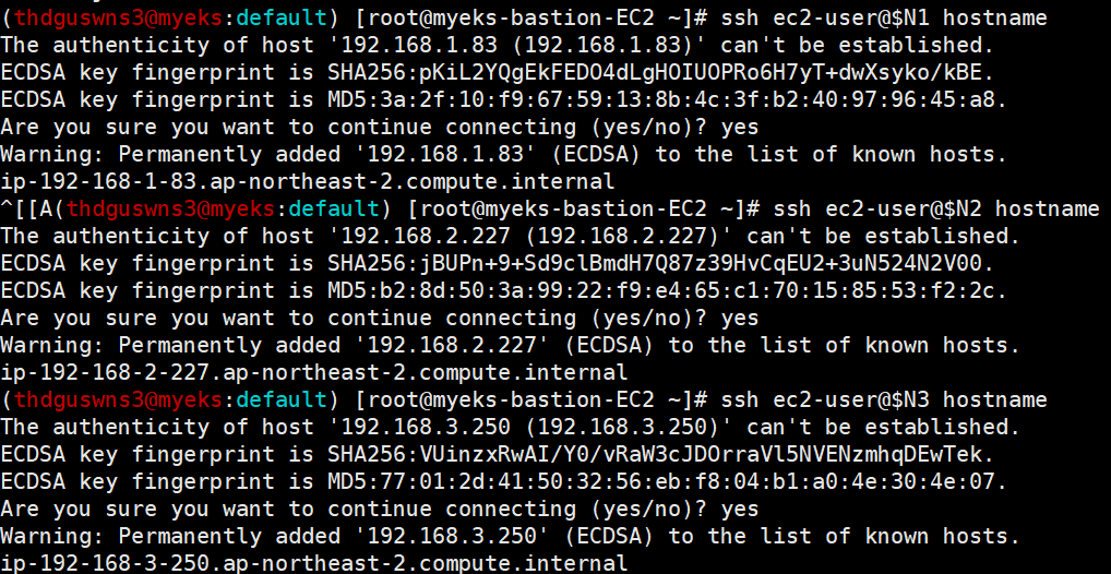 $ ssh -o ec2-user@$N3 hostname