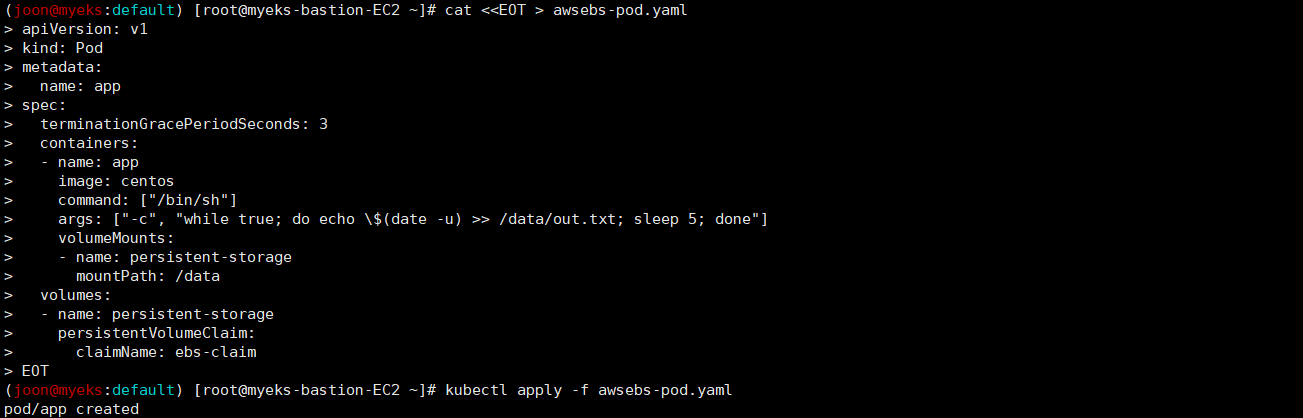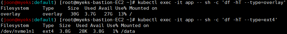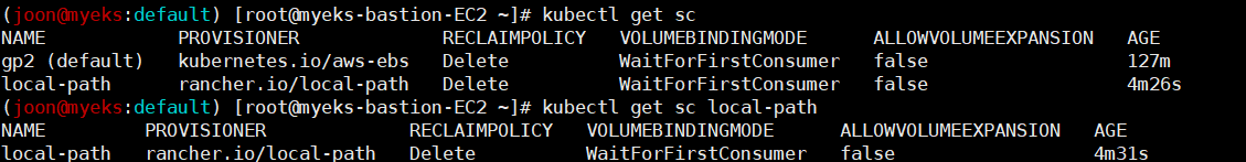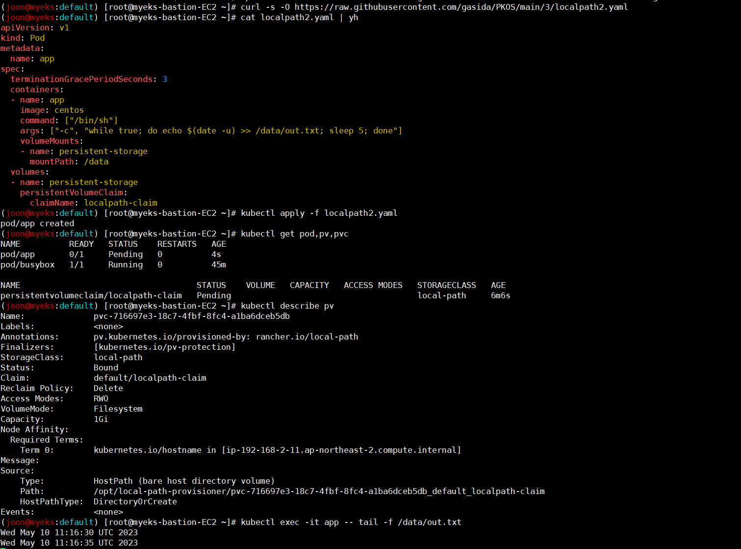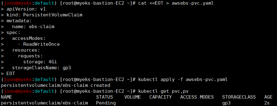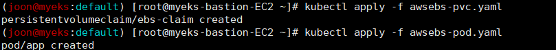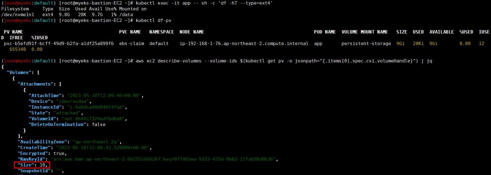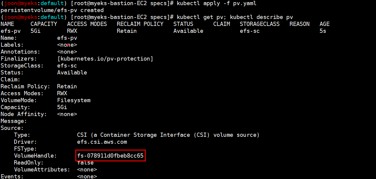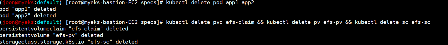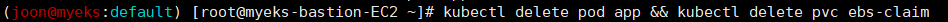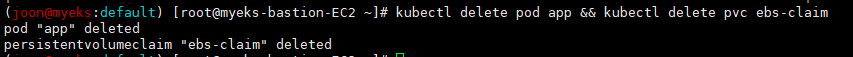 - PV를 삭제하면 PV와 연결된 스토리지 볼륨도 함께 삭제 (EBS 볼륨도 제거)