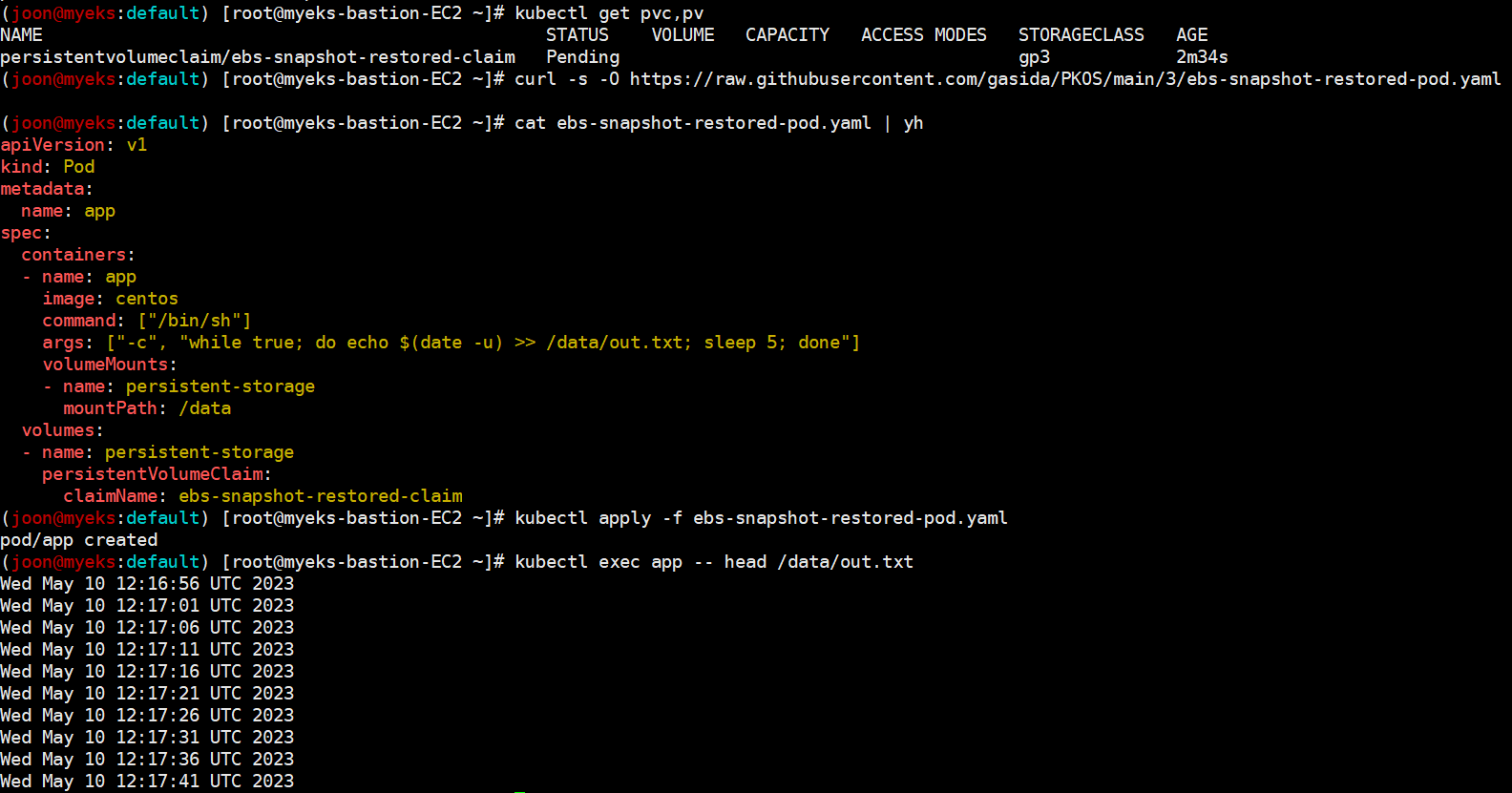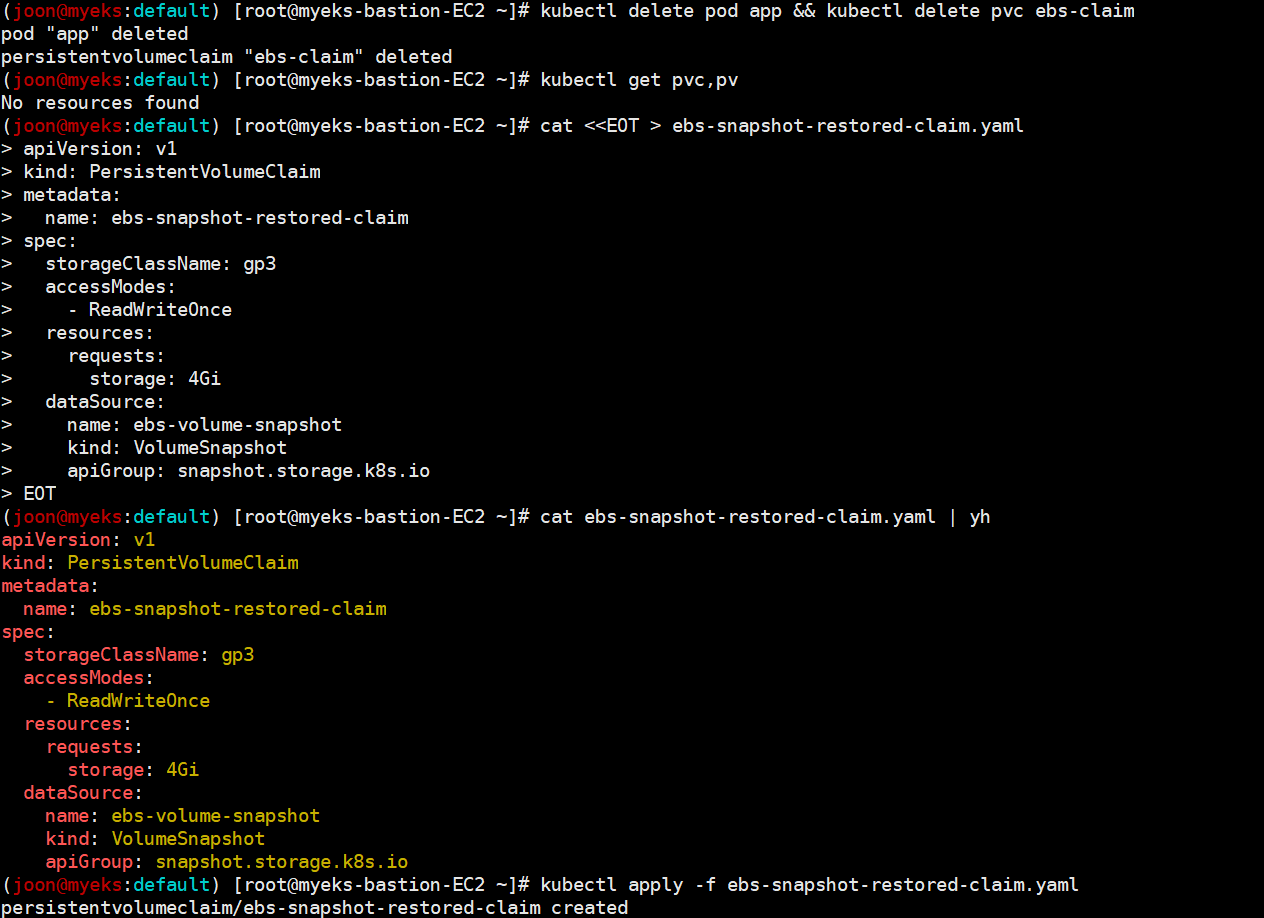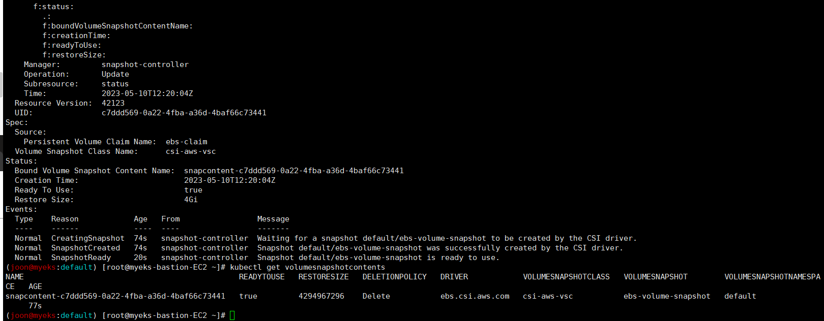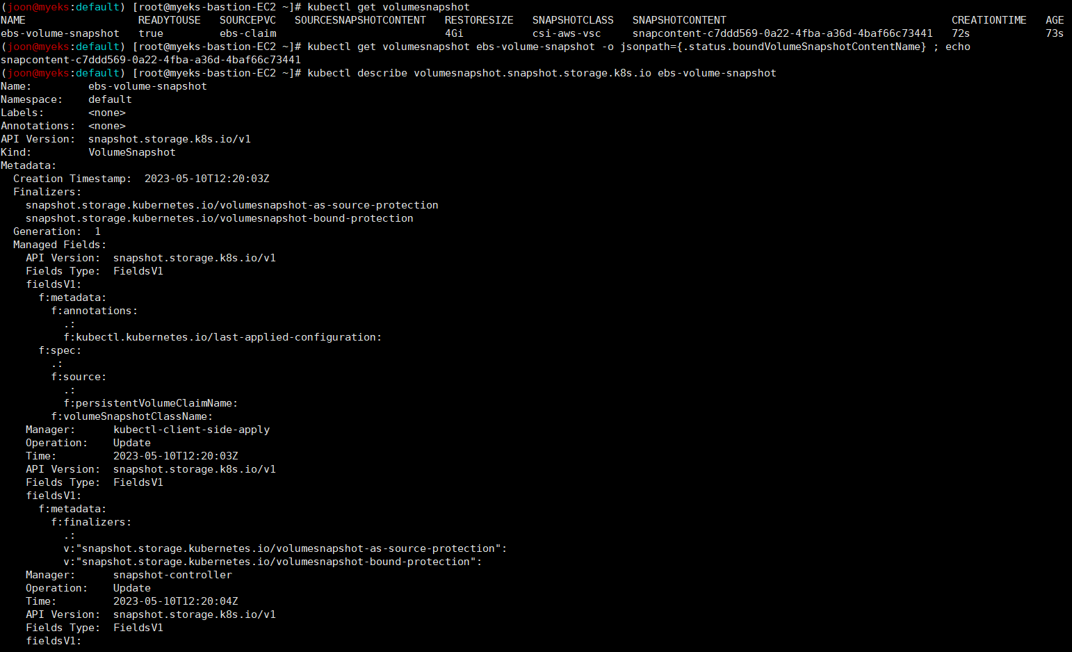 - Kubernetes 클러스터에서 Persistent Volume Claim(PVC)을 생성하면 해당 PVC에 대한 EBS 스냅샷이 자동으로 생성