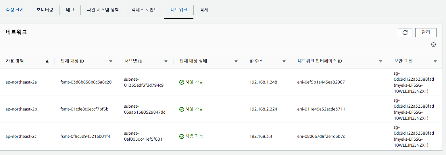 - 다수의 컨테이너에서 동시에 파일을 공유하고 액세스 가능 -> EKS 클러스터에서 사용하기에 적합