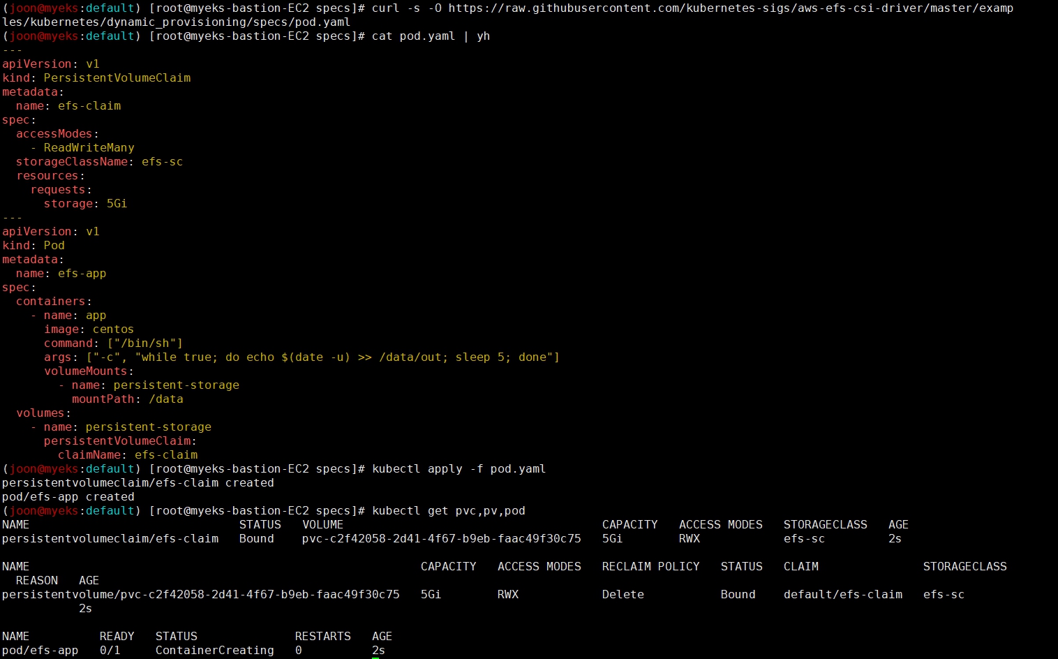 EFS 파일시스템을 다수의 파드가 사용하게 설정 ()Dynamic provisioning using EFS)