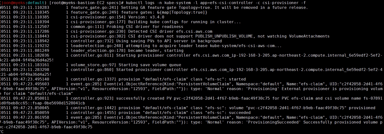- AWS EFS Controller를 사용하면 클러스터 내에서 EFS 파일 시스템을 동적으로 프로비저닝하고 관리 가능