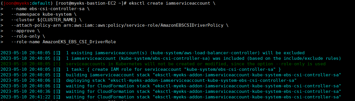 EBS CSI드라이버가 AWS API를 사용해야 하므로 CSI-controller pod에 IAM policy를 부여하기 위해 IRSA를 사용합니다.