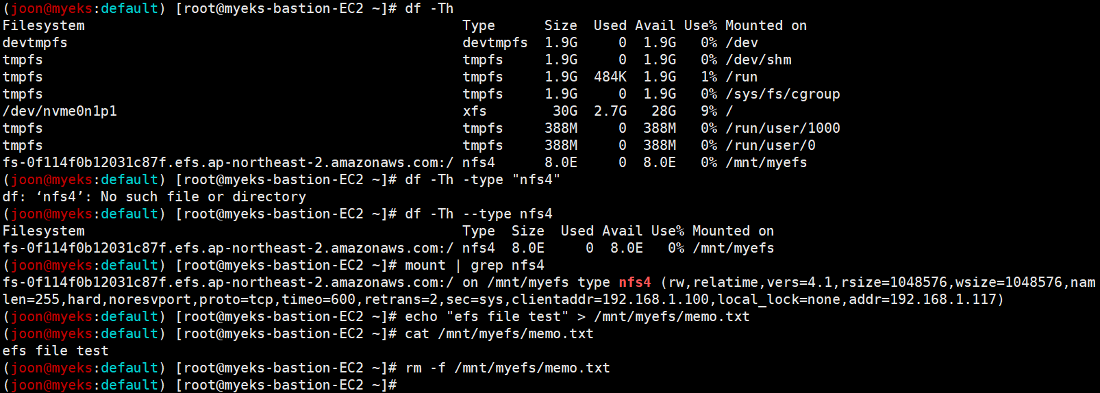 EFS를 마운트하고 정상적으로 마운트 되었는지(파일 생성 및 삭제 등) 확인합니다.