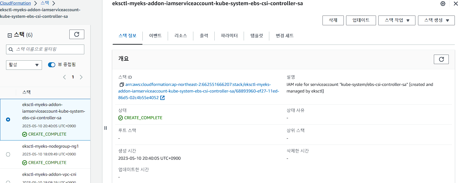 기존과 달라진 점은 "EFS 생성"이 추가된 cloudformation stack을 사용해야한다.