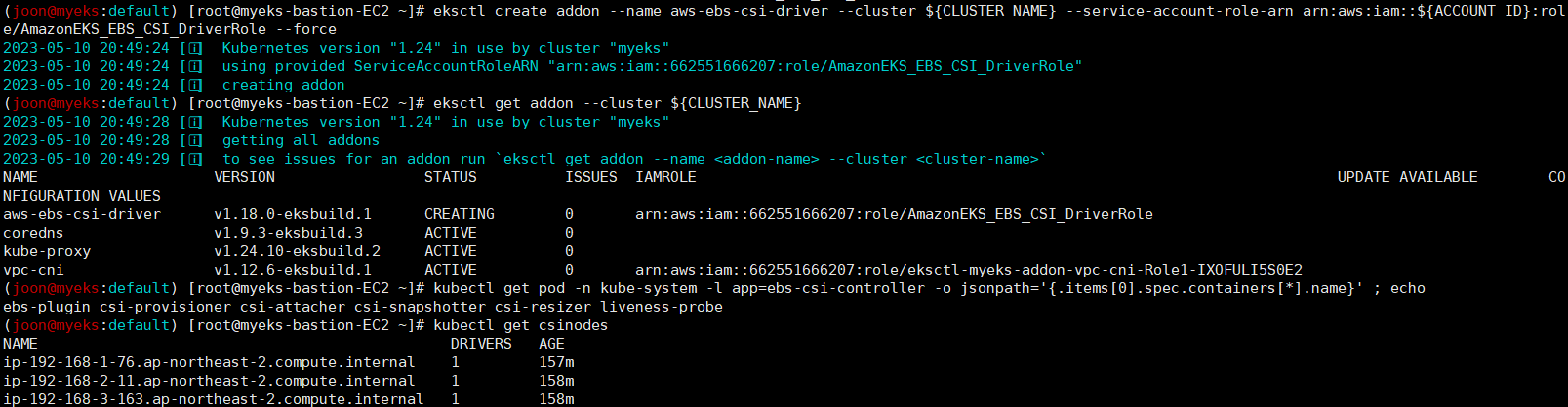 - CSI-Controller -> AWS API를 호출하면서 AWS 스토리지를 관리