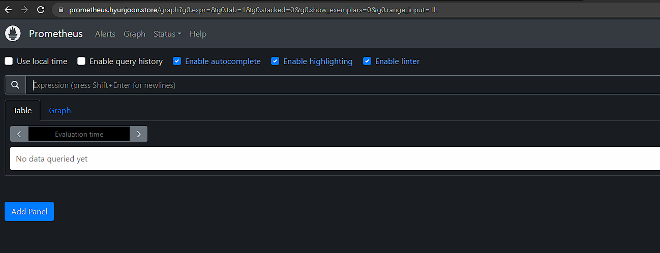 - Explore : 쿼리 언어 PromQL를 이용해 메트릭 정보를 그래프 형태로 탐색