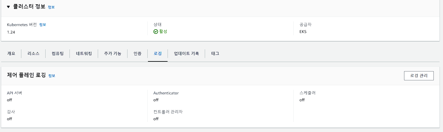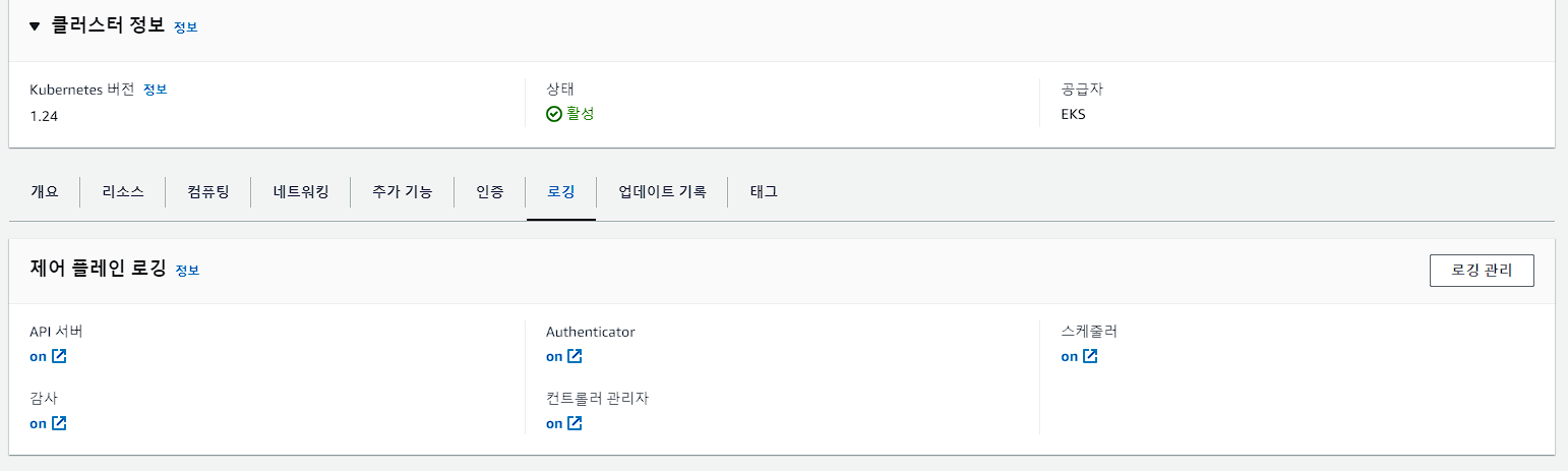 - EKS 클러스터의 Kubernetes 컨트롤 플레인 구성 요소에서 생성되는 로그를 관리