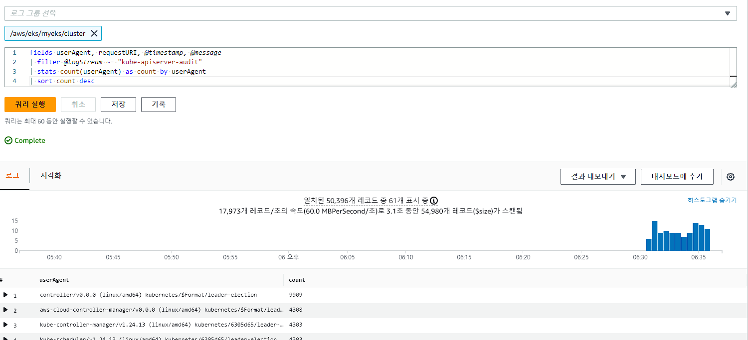 # kube-apiserver-audit 로그에서 userAgent 정렬해서 아래 4개 필드 정보 검색