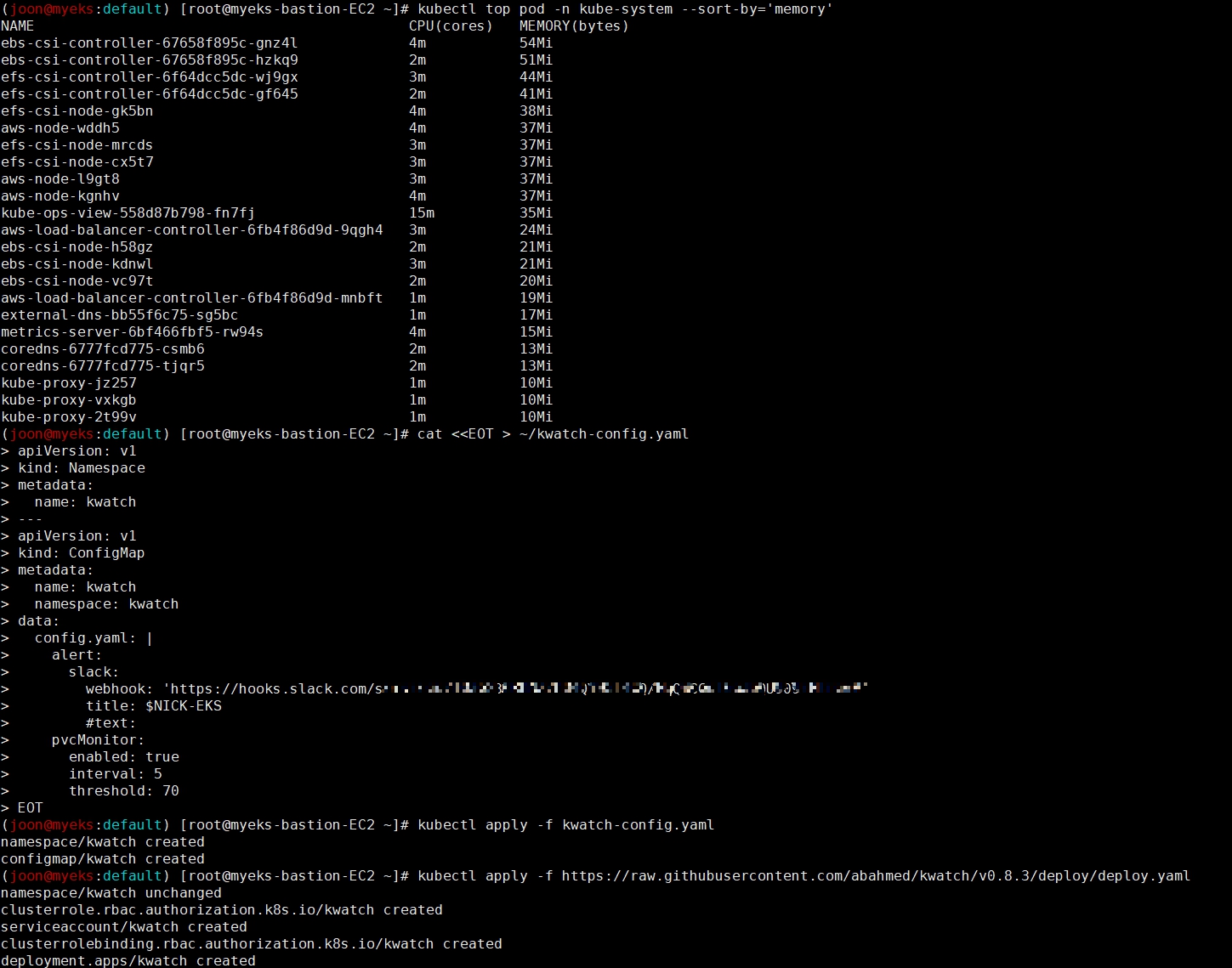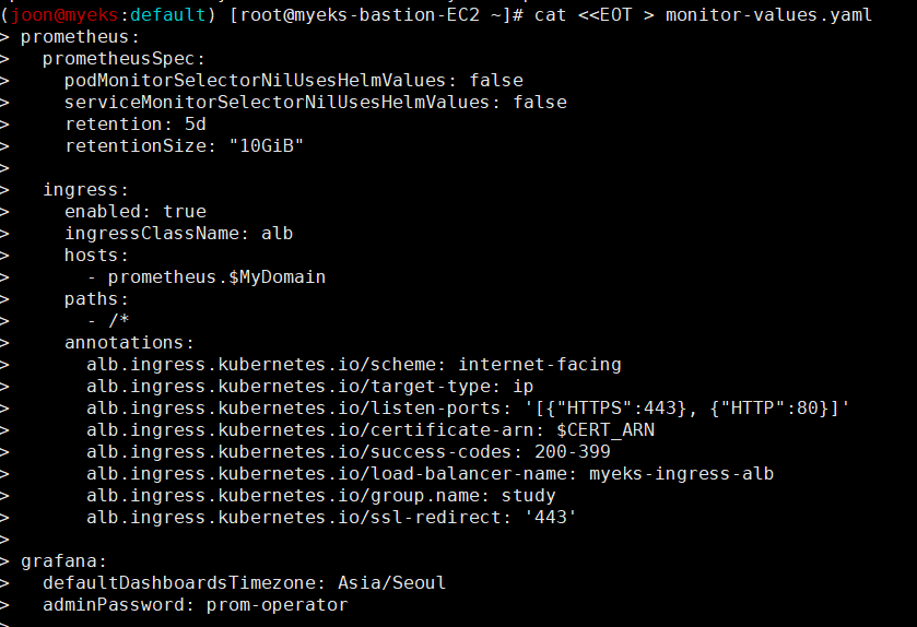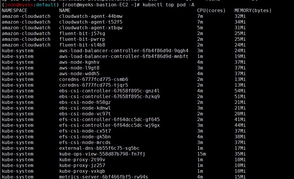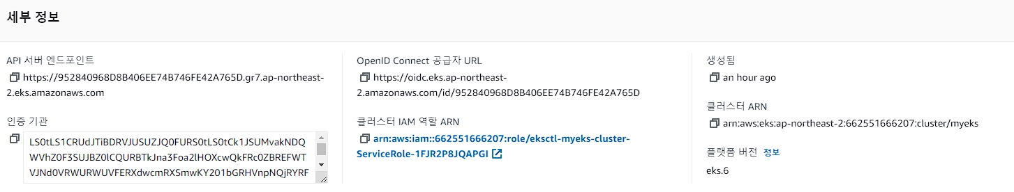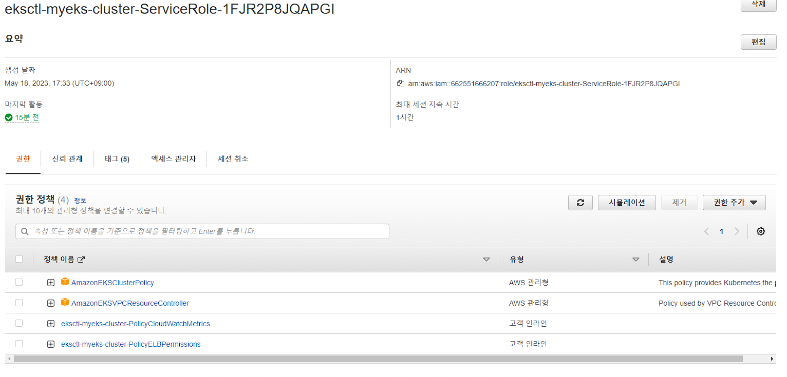 클러스터 ARN : arn:aws:eks:ap-northeast-2:662551666207:cluster/myeks (블로그 포스팅 시점엔 이미 제거 완료)