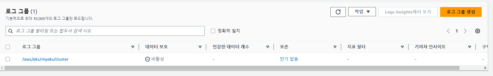 로그 이름( /aws/eks/<cluster-name>/cluster )