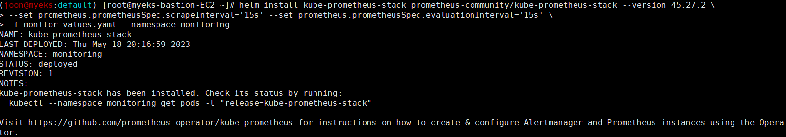 helm install kube-prometheus-stack prometheus-community/kube-prometheus-stack --version 45.27.2 \