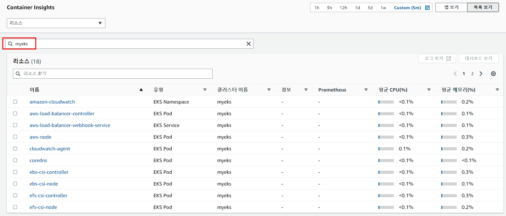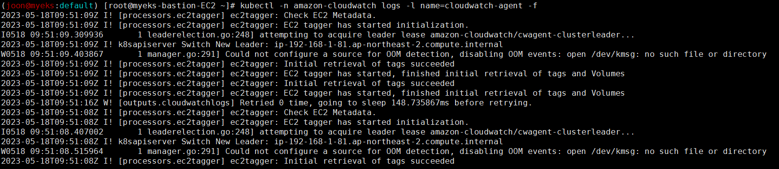 kubectl -n amazon-cloudwatch logs -l name=cloudwatch-agent -f # 파드 로그 확인