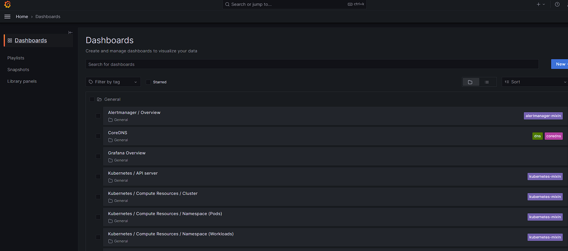 - Dashboards : 대시보드 전체 목록 확인
