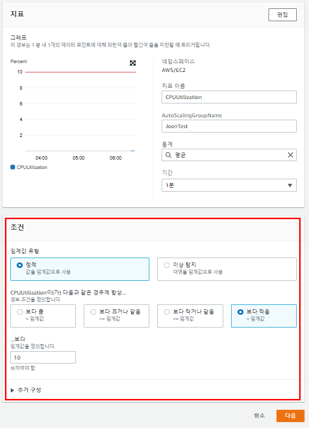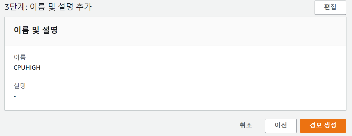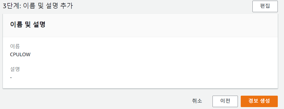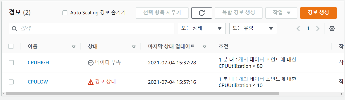 1.2 단순 조정 정책을 위한 CloudWatch Alarm 생성