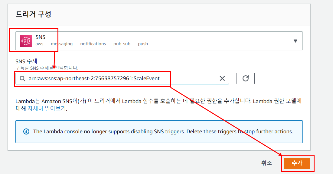 5. SNS를 트리거로 지정