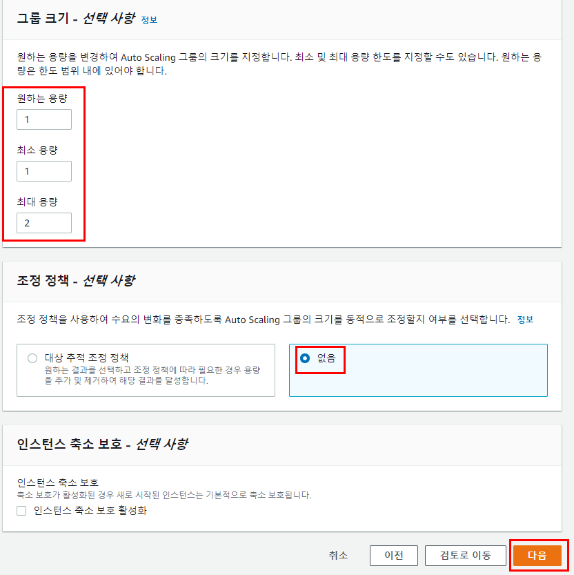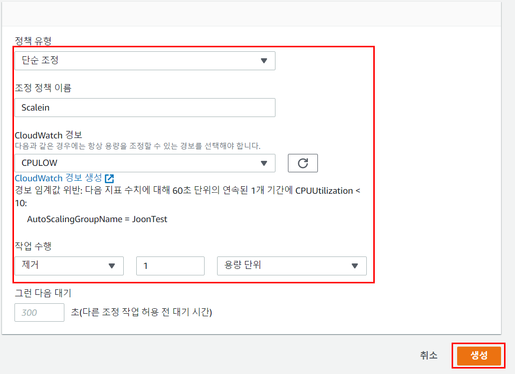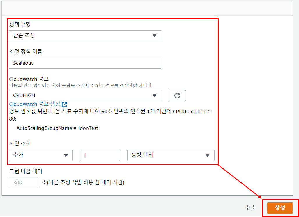 1. AutoScaling Group 생성(단순 조정 정책)