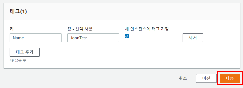 # 새로 생성되는 인스턴스에 태그를 추가한다.