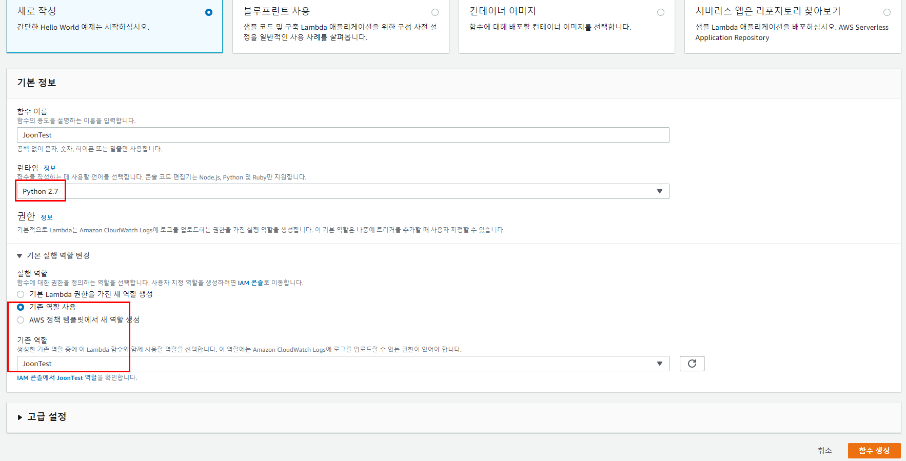 4. Lambda 함수 생성