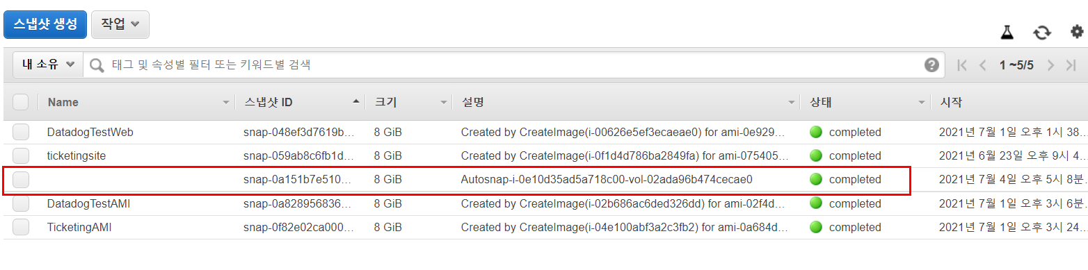 # 새로 생성되는 인스턴스에 연결된 EBS 볼륨 스냅샷을 뜬다.