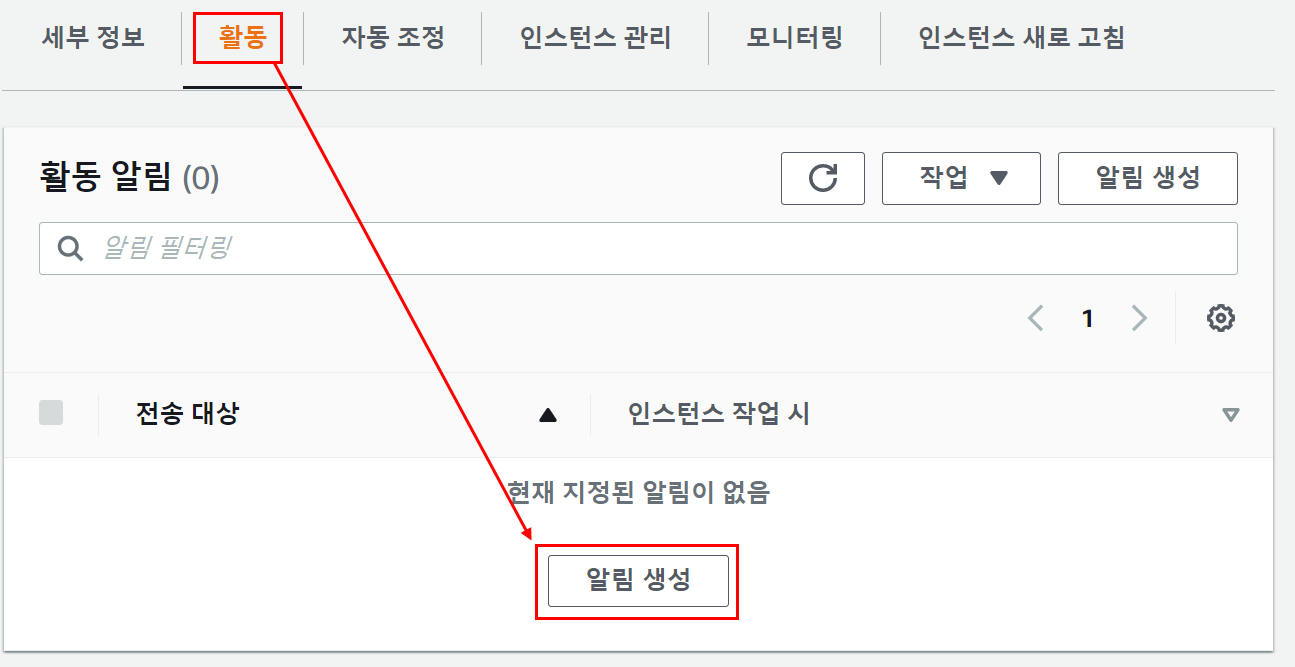 - AutoScaling Group에 Scale in, Scale out과 같은 특정 변경 사항이 발생했을 때, 사용자가 알림을 받을 수 있다.