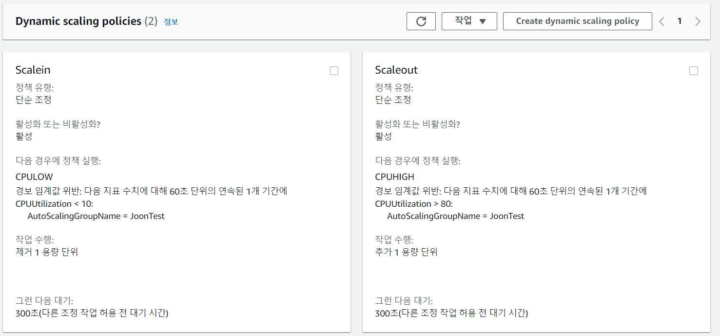 1.3 AutoScaling Group에 단순 조정 정책 적용