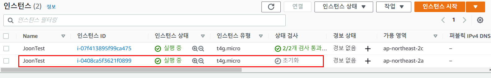 인스턴스에서 상단의 명령어를 입력해준다. 첫 번째 명령어 실행 후 다음 두 번째 명령어는 동작까지 시간이 좀 걸릴 수 있다.