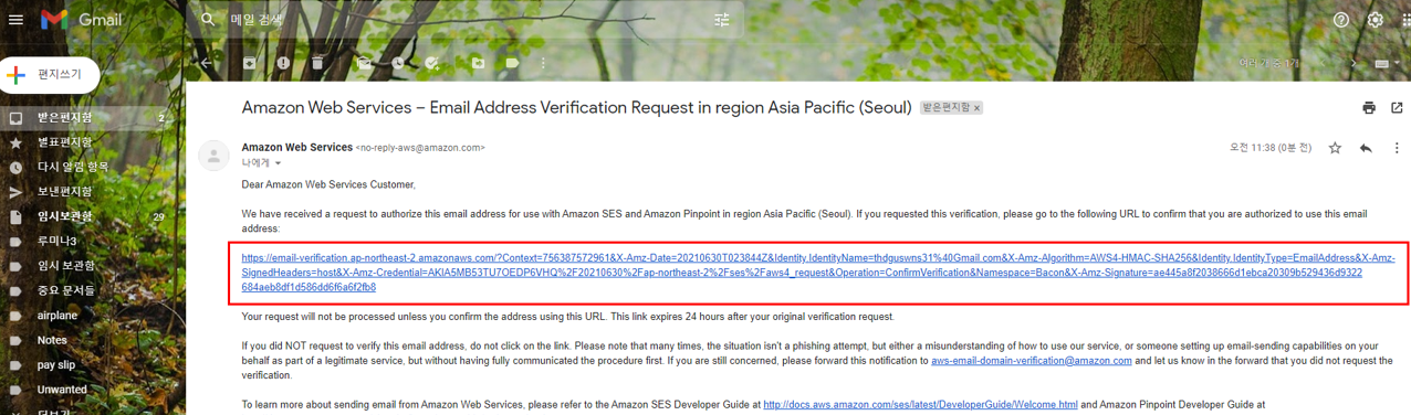 AWS의 승인을 받게되면 인증 받지 않은 이메일로도 메일 발송이 가능해진다. 보통 신청하면 리뷰하는데 몇시간에서 많게는 하루정도 시간이 소요되는 것 같다.