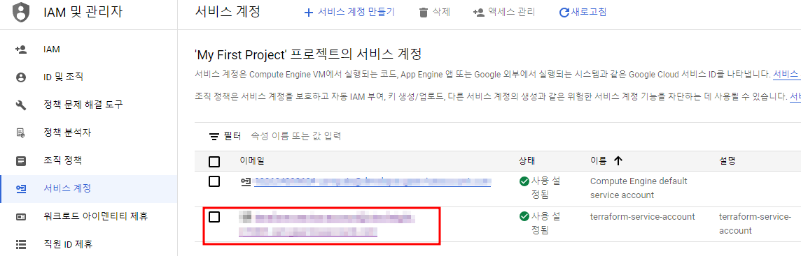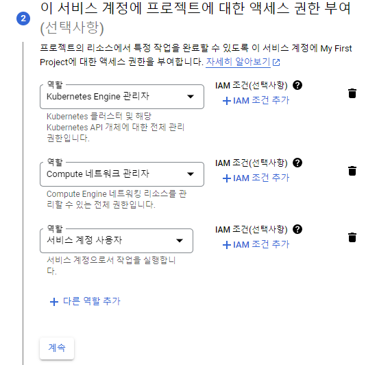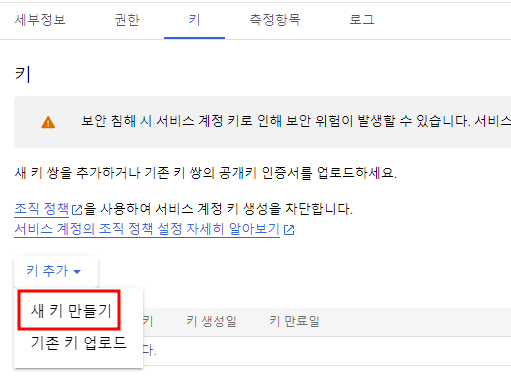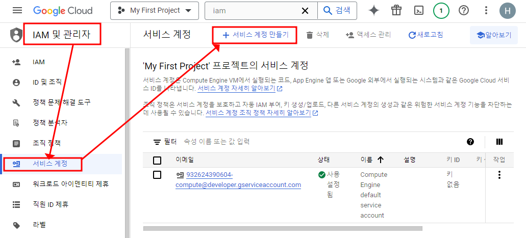 2. Service Account 생성 & Secret key 생성